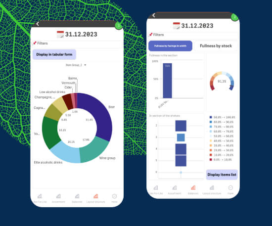 The enhanced application now features the BI Shelf analytics module, presenting prominent report types from the desktop version of LEAFIO Shelf Efficiency. The app caters to top managers, central office staff, and employees seeking instant insights on-the-go. Now available on the mobile app, it features 4 adapted reports: