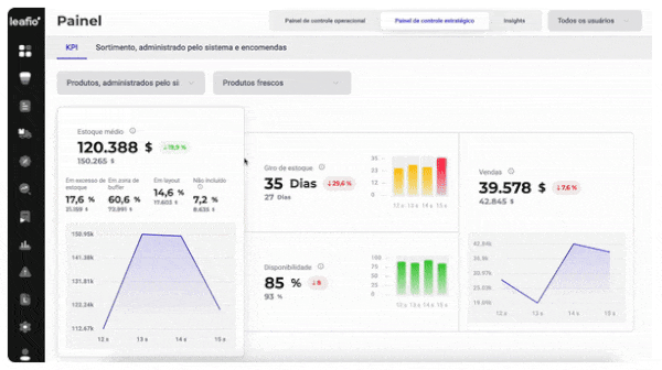 O painel estratégico fornece uma análise de alto nível de estoque, vendas, disponibilidade e rotatividade, sua dinâmica e também a eficiência do uso do sistema e a precisão no envio de avaliações de pedidos; oferece ao gerente insights sobre o gerenciamento de estoque, que podem mostrar áreas problemáticas obscuras sem uma análise profunda.